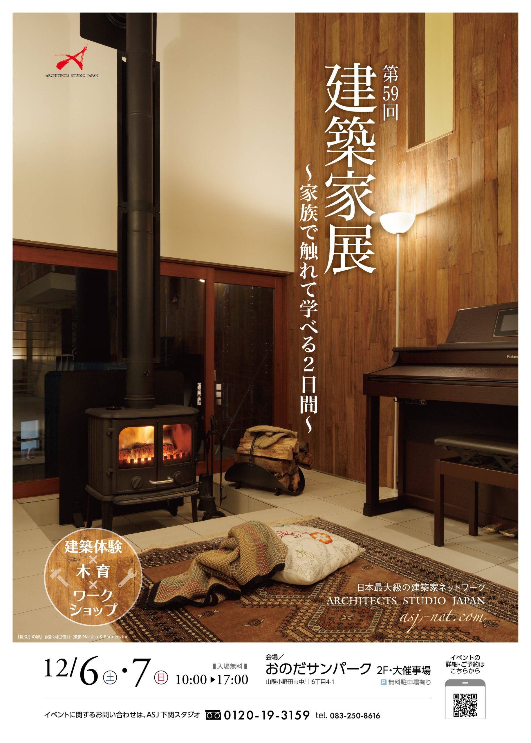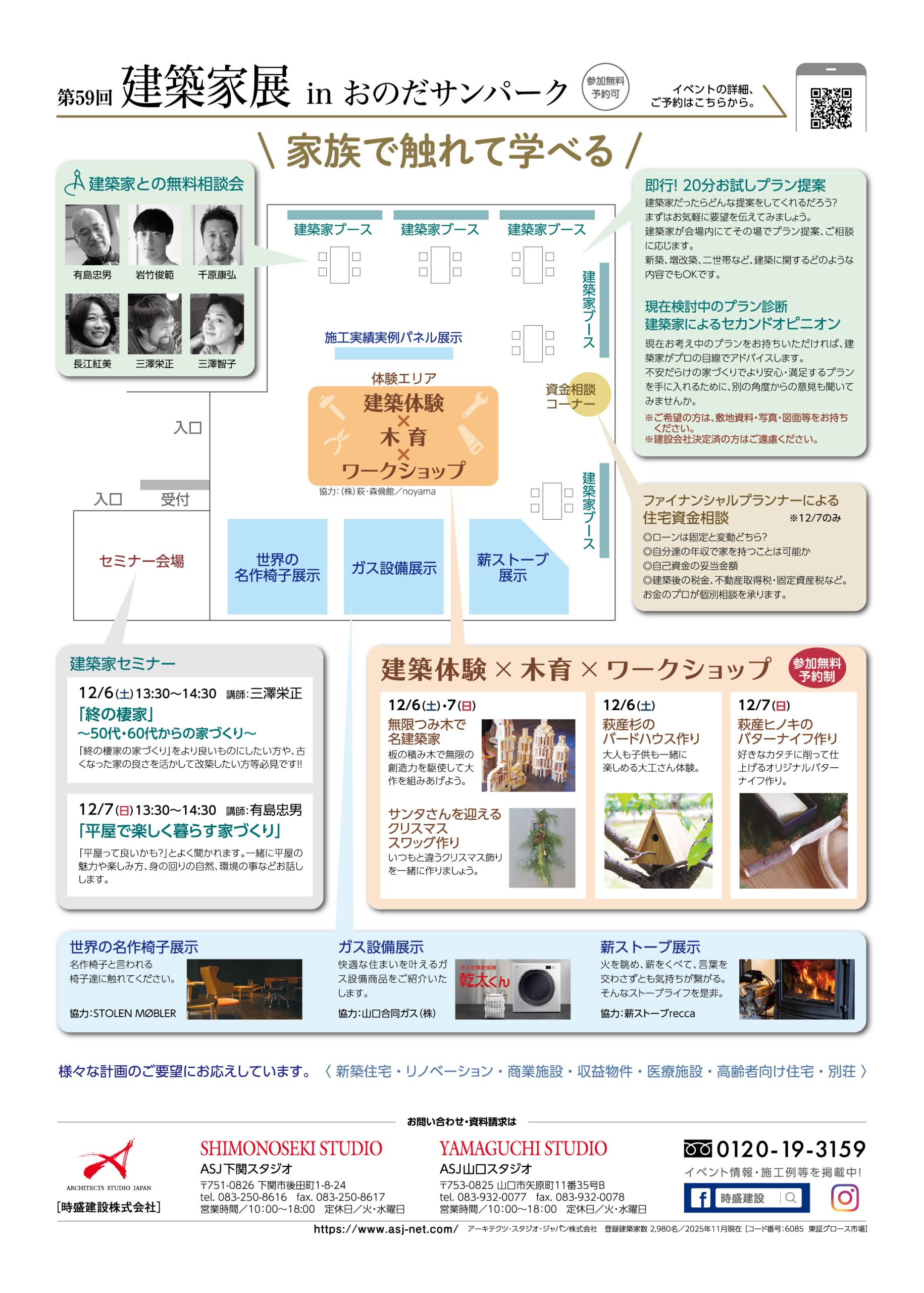 12/6(土)~7(日)の2日間、おのだサンパークにて「第59回建築家展」を開催いたします。